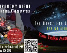 Do you have a telescope, but don’t know how to use it? Come to the Richmond Hill David Dunlap Observatory can help! Bring your telescope to this workshop to have it assessed and to receive one-on-one instruction on its use outdoors!